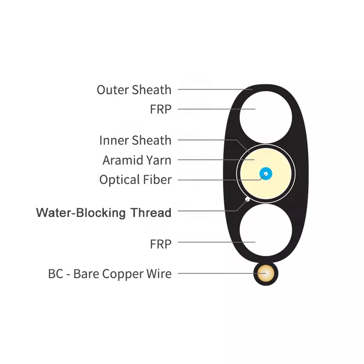This completely dry, flat drop cable is available in universal that are suitable for aerial, direct bury or conduit installation. A water-blocking thread is used to prevent water penetration.