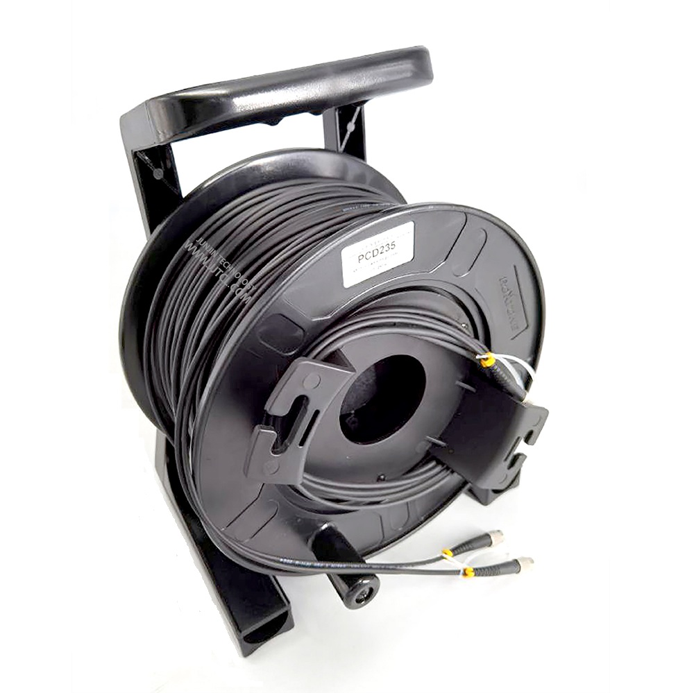 The mobile per-terminated armoured cable reel is developed for temporary field deployment where fiber connections are required. It comes in a portable cable reel for ease of transportation and deployment. The armoured cable is flexible and is able to withstand multiple usages without kinks. One end of the cable is fixed to the reel while the other end is coiled freely for patching to the equipments. Generally these will be customized base on user's requirement so there are options of various cable and connector type with any cable length which then will determine the size of the reel.