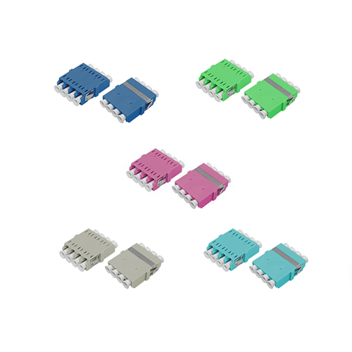 LC Quad ADAPTER with short flange.SM UPC blue,APC green,MM with beige,aqua,violet or Lime.