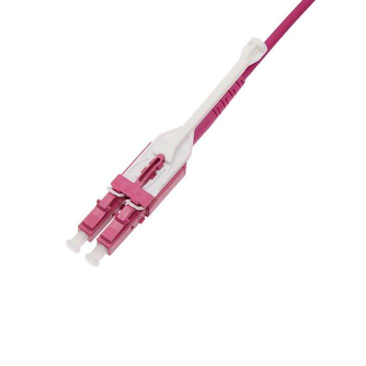 JJT’s range of LC Uniboot patchcords with integrated push/pull tab are the ideal solution for high density patching environments. The unique push pull tab allows easy finger access and a secure holding fixture for any patching or handling process. The attractive, low profile uniboot connector design utilises round 2 mm duplex cord for neater and denser cable management. For multimode OM4 and OM3 applications, low loss connectors are used to offer the lowest possible channel loss.
