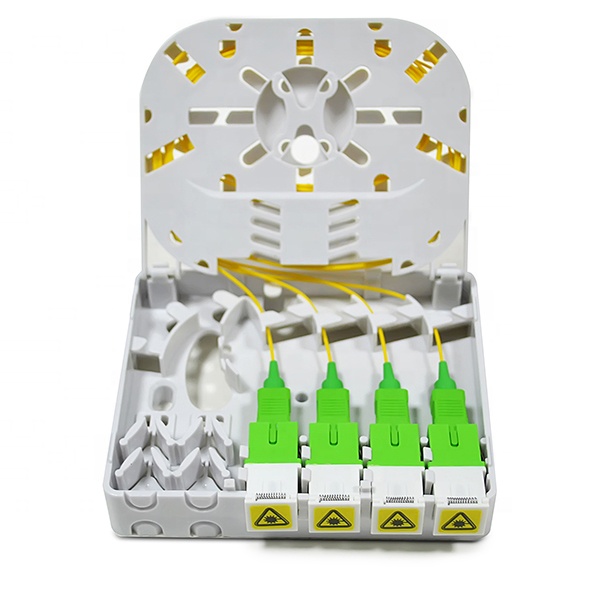 JJ4C-A02 series fiber rossette box is able to hold up to 4 subscribers. It is used as a termination point for the drop cable to connect with patch cable in FTTH indoor application. It integrates fiber splicing, termination, storage and cable connection in one solid protection box.